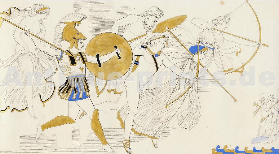 Mythologie. Eau-forte gravée par Boutrois d´après Vauthier. 1804. Bon état, trous de vers restaurés. Aquarellée et gouachée à la main. 16x11cm. Montée sous passe-partout.