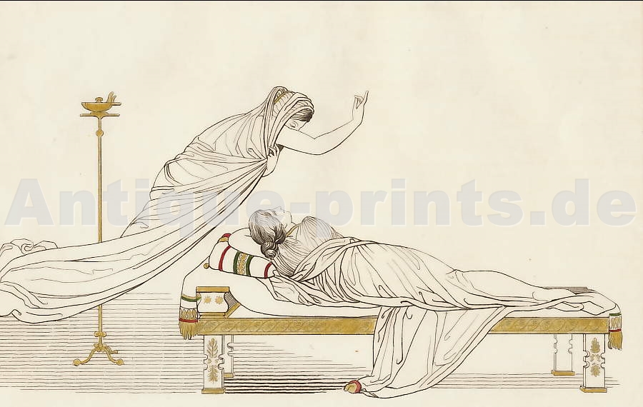 Varia. Gravure sur acier, gravée par E. Roffe d´après F. R. Roffe (sculpture de W. Theedl). 1855. Très bon état. Aquarellée à la main. 23x8cm. Montée sous passe-partout.