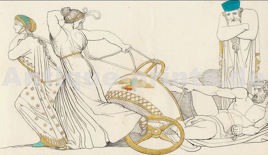 Mythologie. Eau-forte, gravée par J. Mathieu d´après J. B. Wicar. 1789. Très bon état. Aquarellée et gouachée à la main. 22,5x14cm. Montée sous passe-partout.