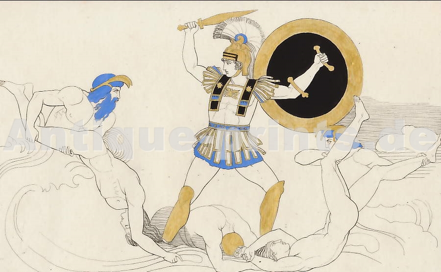 Mythologie. Gravure sur acier, gravée par A. H. Payne d´après Süssmann. ca 1850. Bon état. Aquarellée à la main. 19x9cm. Montée sous passe-partout.