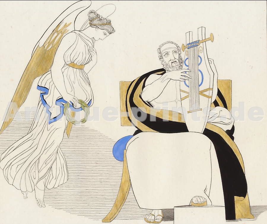 Angleterre. Mezzotinte gravé par S. W. Reynoldsd´après J. Reynolds. 1837. Salissures dans les marges. Aquarellée à la main. 16,5x10cm. Montée sous passe-partout.