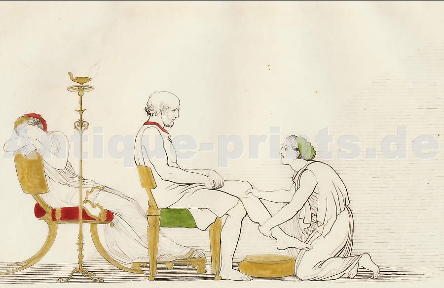 Iliade. Gravure au trait, gravée par E. A. Réveil d´après John Flaxman. 1833. Bon état. Aquarellée à la main. 17,5x12cm. Montée sous passe-partout.