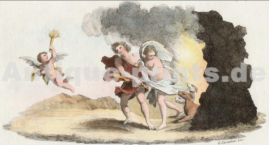 Mythologie. Gravure sur cuivre dessinée et gravée par Tommaso Piroli. 1804. Légères rousseurs. Aquarellée à la main. 16x10,5cm. Montée sous passe-partout.
