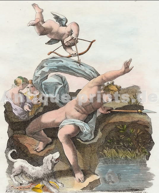 Odes d´Anacréon. Gravure au trait, gravée par H. G. Chatillon d´après A.-L. Girodet. 1825. Très bon état. Aquarellée à la main. 17,5x14,5cm. Montée sous passe-partout.
