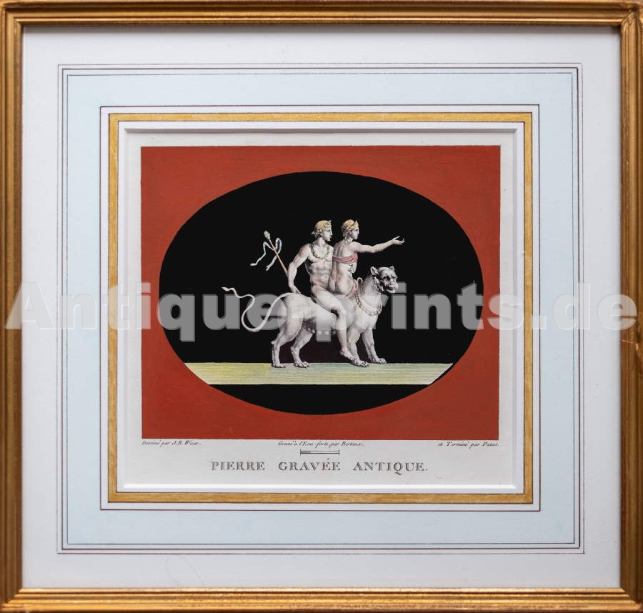 Mythologie. Gravure au trait d´après B. Genelli. 1866. Légéres rousseurs. Aquarellée à la main. 22,5x14,5cm. Montée sous passe-partout.
