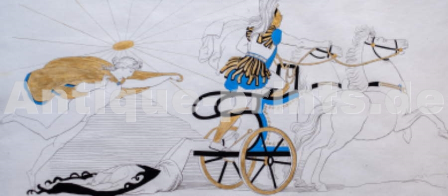 Herculaneum. Original copper engraving, engraved by G. Aloja after G. Morghen. 1765. Very good condition. Printed on the reverse side. Hand-coloured (watercolour and gouache). 10,5x7cm. Matted.