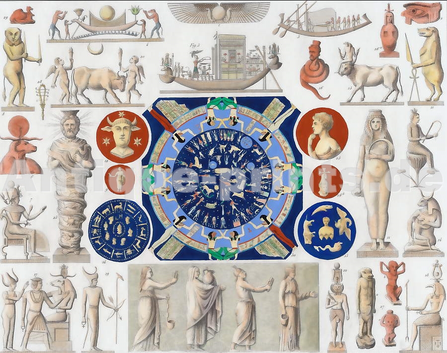 Mythologie. Original copper engraving drawn and engraved by B. Picart. 1731. Good condition, wear consistent with age and use. Decorative border. Hand-coloured. 23x17,5cm. Matted.