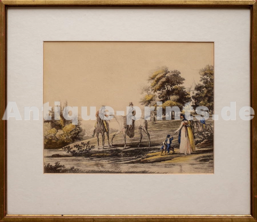 Paris. Original steel engraving drawn by T. T. Bury, engraved by T. Winkles. 1829. Small mark on the engraved surface. No title under the plate. Hand-coloured. 14x8cm. Matted.