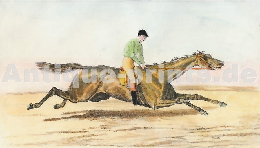 Race. Original lithograph by Lemercier. 1845. Good condition. Old hand-colouring. 18,5x10,5cm. Matted.