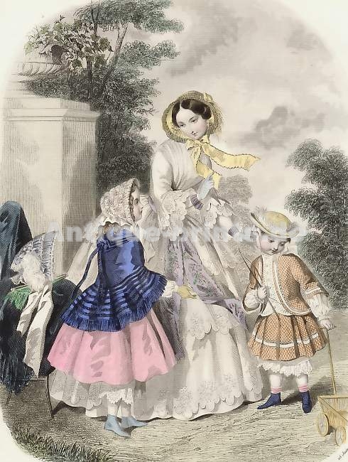 Mode. Lithographie de J. Desjardins d´après Anais Toudouze. 1852. Très bon état. Coloris d´époque. 20x14,5cm. Montée sous passe-partout.