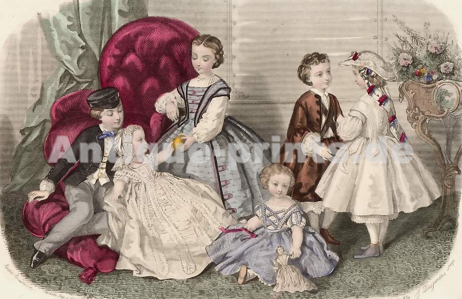 Mode. Lithographie de J. Desjardins d´après Anais Toudouze. 1859. Bon état. Coloris d´époque. 20x13,5cm. Montée sous passe-partout.