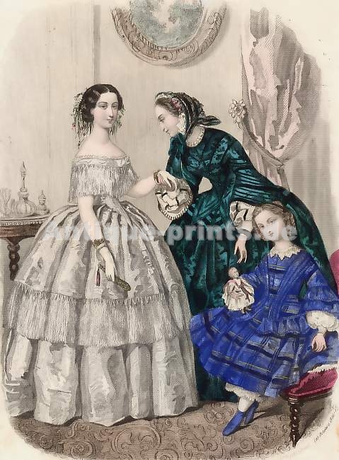 Mode. Lithographie. 1857. Bon état. Coloris d´époque. 21x15cm. Montée sous passe-partout.