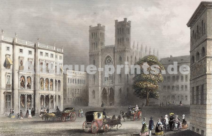 France. Original steel engraving drawn by C. Stanfield, engraved by T. Higham. 1836. Very good condition. Modern hand-colouring. 13,5x9cm. Matted.
