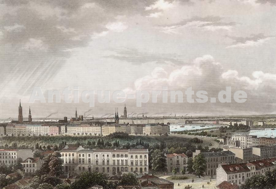 Herculaneum. Original copper engraving, engraved by N. Billy after N. Vanni. 1765. Very good condition. Hand-coloured (watercolour and gouache). 32x22,5cm.