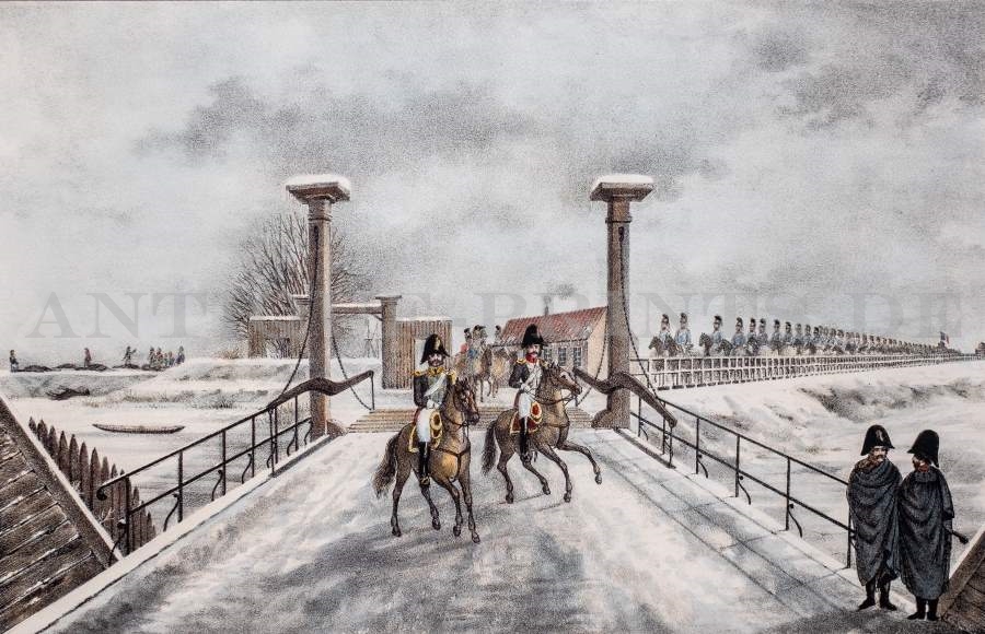 Das Brookthor in Hamburg während der Belagerungszeit 1813-1814, und die Elbbrücke bis zur ersten Fähre