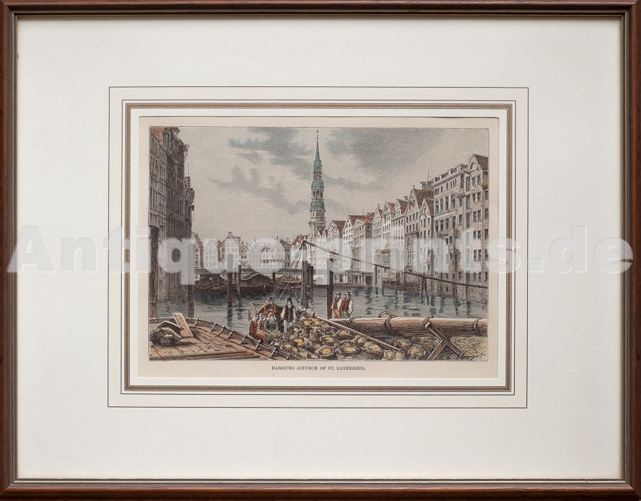 Paris. Gravure sur acier gravée par E. Willmann. 1853. Salissures dans les marges. Bordure décorative. Aquarellée à la main. 11x7,5cm. Montée sous passe-partout.