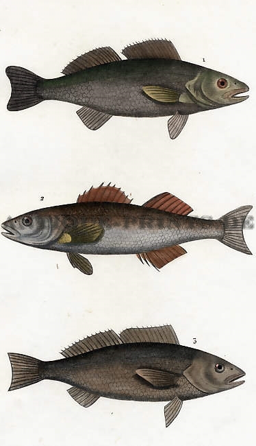 Ichthyologie. Gravure sur cuivre, gravée par Melle Cornu d´après J.-G. Prêtre. 1825. Très bon état. Aquarellée à la main. 15,5x9cm. Montée sous passe-partout.