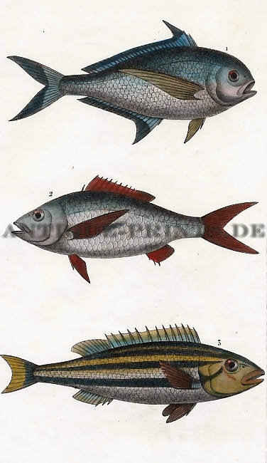 Ichthyology. Original steel engraving, engraved by J. H. Engleheart after H. L. Rolfe. 1856. Very good condition. Hand-coloured. 15,5x10,5cm. Matted.