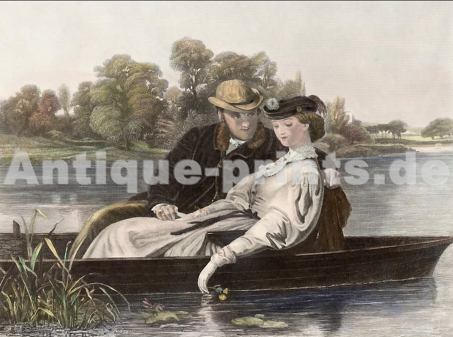 Genre. Gravure sur acier. ca 1855. Très bon état. Aquarellée à la main. 24,5x19,5cm. Montée sous passe-partout.