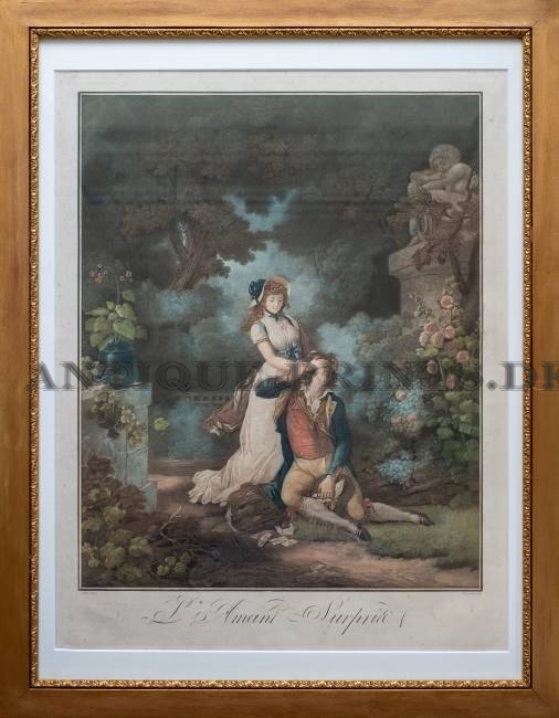 France. Lithographie d´après Jean Berain. 1882. Bon état. Aquarellée à la main. 30,5x26,5cm. Montée sous passe-partout.