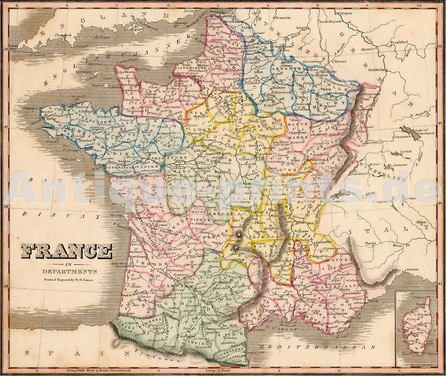 Deutschland. Stahlstich von Lemaître. 1842. Sehr guter Zustand. Handkoloriert. 13,5x9,5cm. Mit Passepartout.
