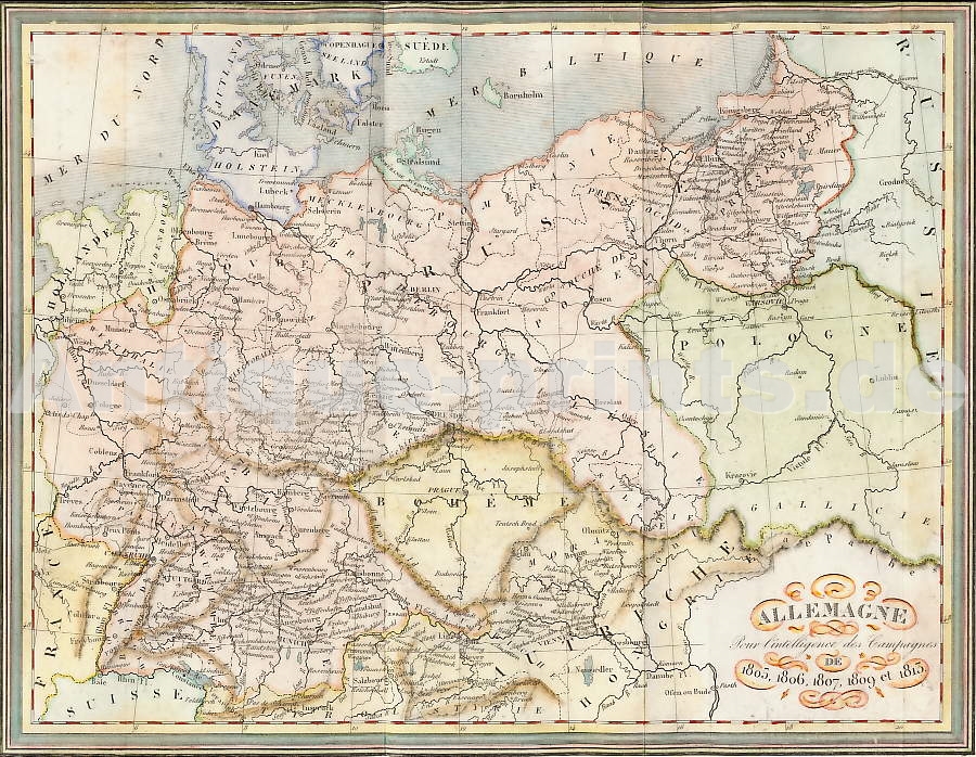 Deutschland. Stahlstich von J. Poppel nach L. Rohbock. 1856. Sehr guter Zustand. Handkoloriert. 14,5x10,5cm. Mit Passepartout.