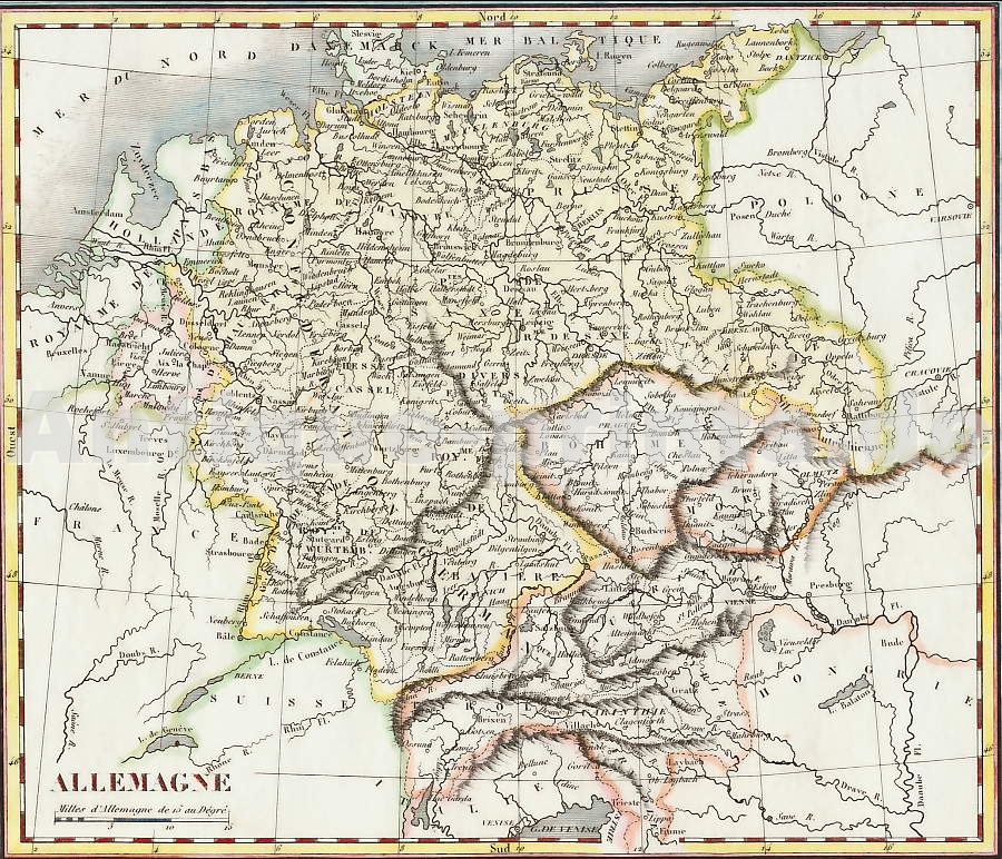 Frankreich. Lithographie von F. Delpech. 1842. Sehr guter Zustand. Handkoloriert. 8,5x8cm. Mit Passepartout.