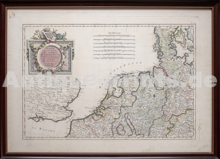 . Kupferkarte von G. Rizzi Zannoni. Paris, Lattre, 1763. Guter Zustand. Althandkolorierung. 45x30cm. Gerahmt: 57,5x42cm.