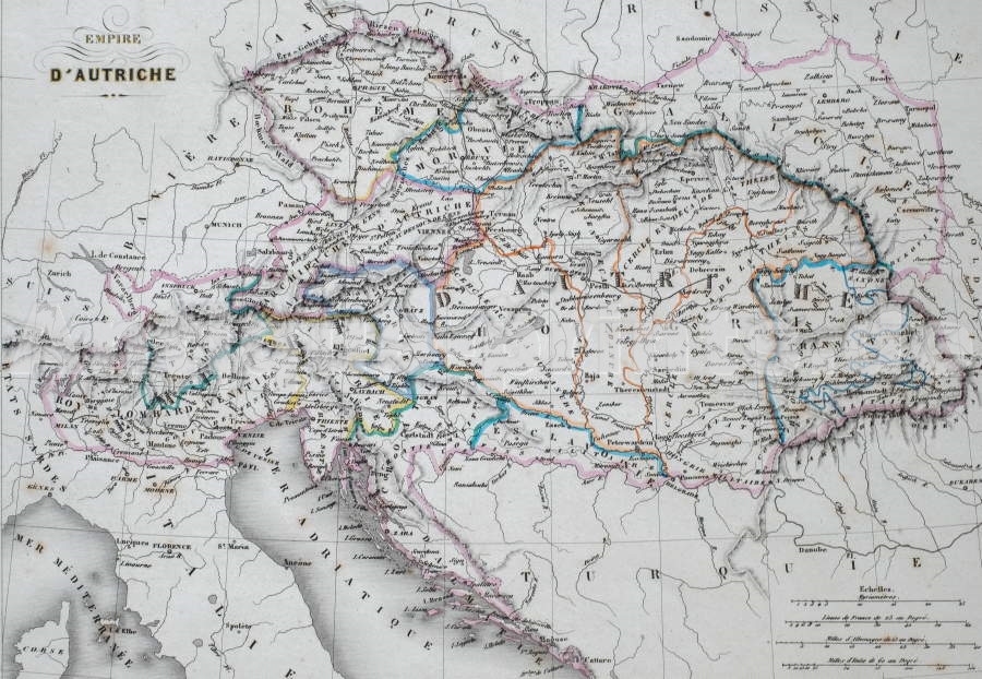 Deutschland. Stahlstich gezeichnet und gestochen von A. und E. Rouargue. 1860. Sehr guter Zustand. Handkoloriert. 17x11,5cm. Mit Passepartout.