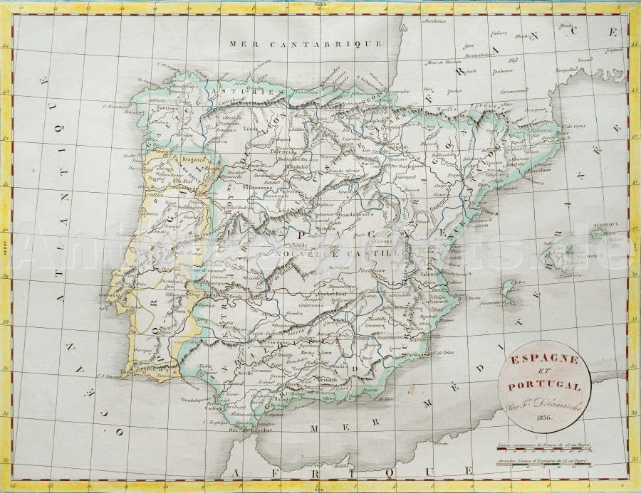 Deutschland. Stahlstich. 1851. Sehr guter Zustand. In gestochener Rankenbordüre. Handkoloriert. 19x14cm. Mit Passepartout.