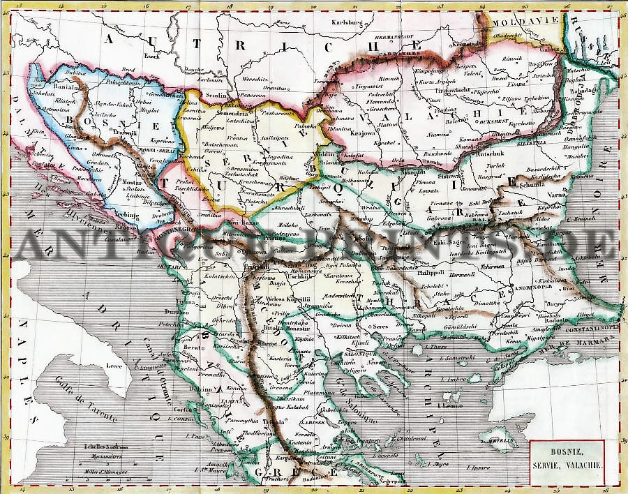 Gravure, Stich, Engraving, Carte, Karte, Map, Valachie, Wallachia, Wallachei, Serbia, Serbien Serbie, Bosnia, Bosnien, Bosnie