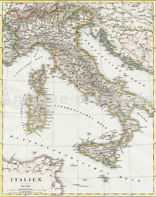 Varia. Original steel engraving drawn by E.T. Parris, engraved by J. Thomson. 1840. Very good condition. Modern hand-colouring. 16x 20cm. Mounted.