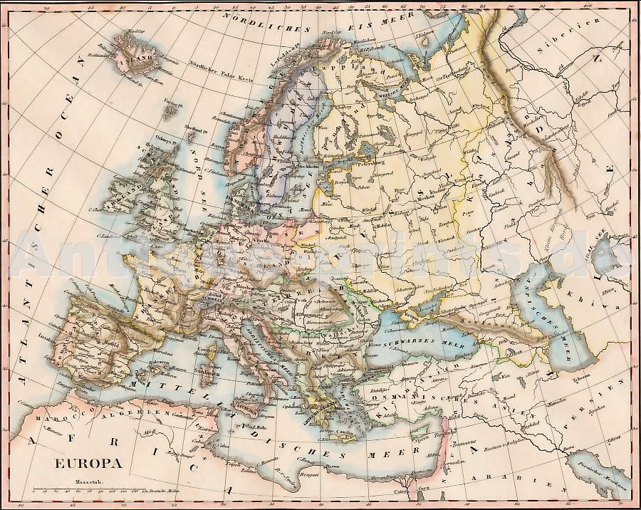 Allemagne. Aquatinte, gravée par J. Martens d´après C. Fink. ca 1840. Très bon état. Aquarellée à la main. 12,5x9,5cm. Montée sous passe-partout.