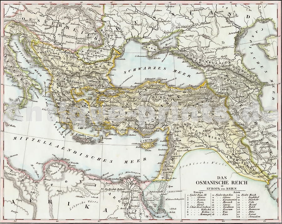 Turkey. Original steel engraving, engraved by E. Challis after T. Allom. 1838. Very good condition. Hand-coloured. 19x12,5cm. Matted.