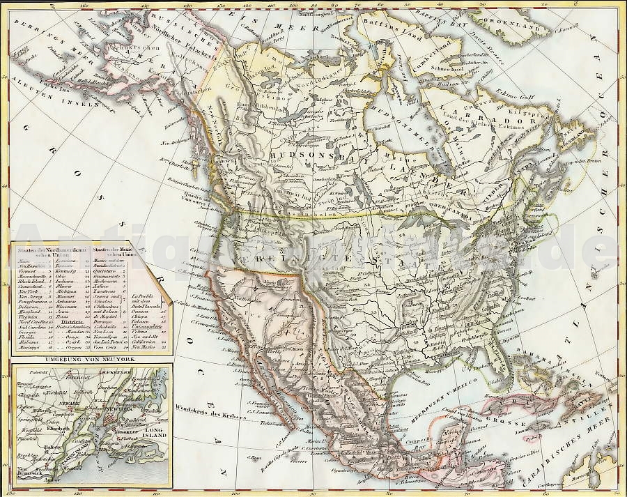 North America. Original map on steel, engraved by J. von Baehr after P. Weber. Inset: