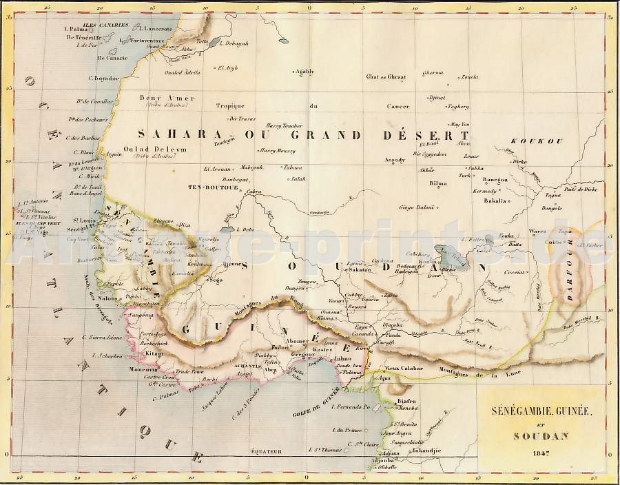 Éthiopie. Carte gravée sur acier. Paris, 1846. Très bon état. Aquarellée à la main. 17,5x10,5cm. Montée sous passe-partout.