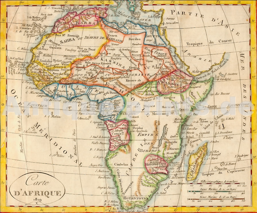 Sénégal. Gravure sur acier, gravée par H. Dandeleux d´après A. Lorrain. 1835. Légères rousseurs. Aquarellée à la main. 23x18,5cm. Montée sous passe-partout.