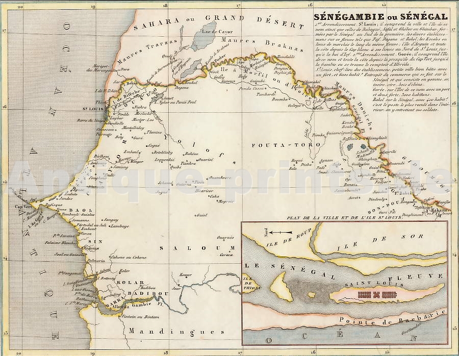 Afrique. Carte gravée sur cuivre par J. D. Goigoux. Paris, 1819. Très bon état. Pliures. Aquarellée à la main. 25x21cm. Montée sous passe-partout.