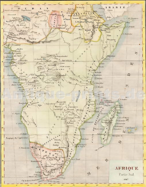 Afrique. Lithographie d´après Victor Levasseur, carte gravée par A. Piat. 1856. Très bon état. Aquarellée à la main. 41x28cm.