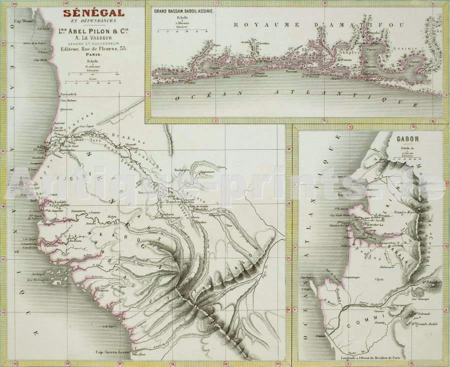 Afrique. Carte sur cuivre, gravée par Rousset. 1833. Très bon état. Aquarellée à la main. 21x18cm. Montée sous passe-partout.
