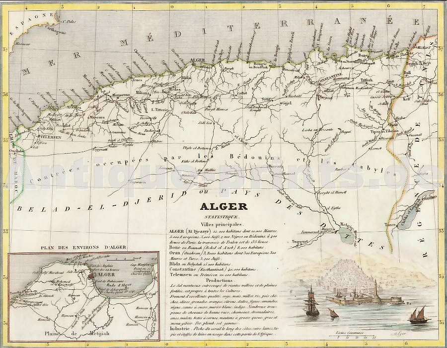 Afrique. Carte sur cuivre, gravée par Rousset. 1833. Très bon état. Aquarellée à la main. 21x18cm. Montée sous passe-partout.