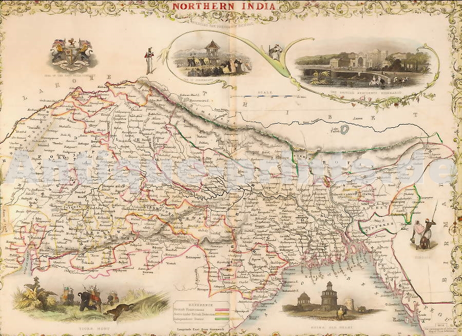Inde. Carte gravée sur cuivre par R. Bonne. 1772. Très bon état. Pliure centrale, aquarellée à la main. 35x24cm. Montée sous passe-partout.