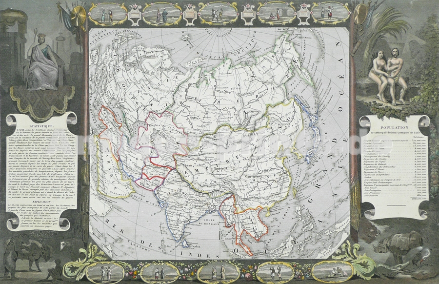 France. Lithographie dessinée et gravée par Hippolyte Pauquet. 1864. Très bon état. Tampon de bibliothèque dans le coin supérieur droit. Aquarellage ancien. 14x7cm. Montée sous passe-partout.