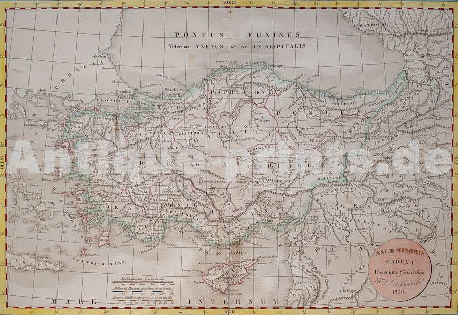 Jordanie. Gravure sur acier, gravée par J. C. Bentley d´après (W. H. Bartlett). ca 1850. Très bon état. Aquarellée à la main. 10,5x7cm. Montée sous passe-partout.
