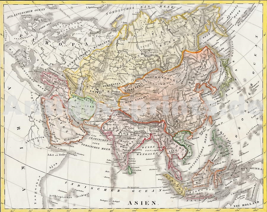 Jordanie. Gravure sur acier, gravée par Grünenwald d´après de Laborde. Bibliograph. Institut in Hidlburghausen. 1836. Bon état. Aquarellée à la main. 15,5x10cm. Montée sous passe-partout.