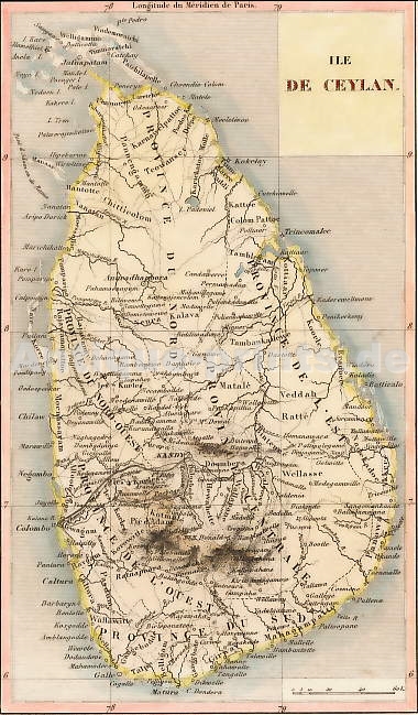 Sri Lanka. Original map on steel. Paris, 1850. Very good condition. Hand-coloured. 18x10,5cm. Matted.