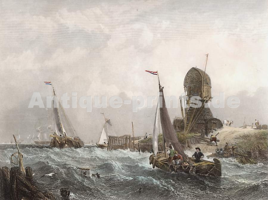 Pays-Bas. Gravure sur acier, gravée par R. Wallis d´après C. Stanfield. ca 1855. Très bon état. Aquarellée à la main. 23x18cm. Montée sous passe-partout.