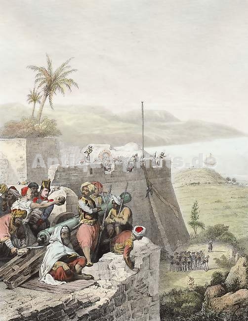Pompeji. Kupferstich von F. Morghen nach G. Casanova. 1765. Sehr guter Zustand. Kein Titel. Handkoloriert. 32,5x23cm.