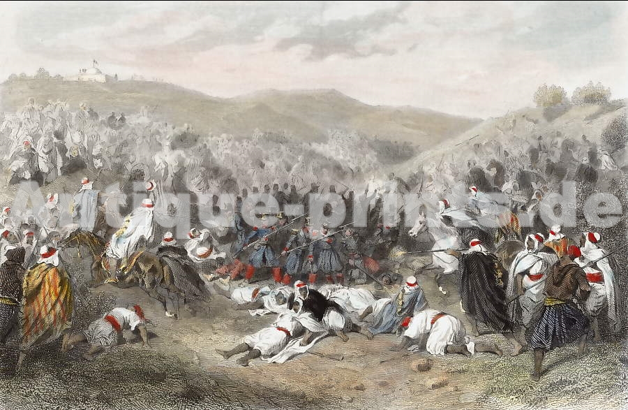 Deutschland. Stahlstich von Beyer nach H. Vernet. 1852. Sehr guter Zustand. Handkoloriert. 24x14cm. Mit Passepartout.