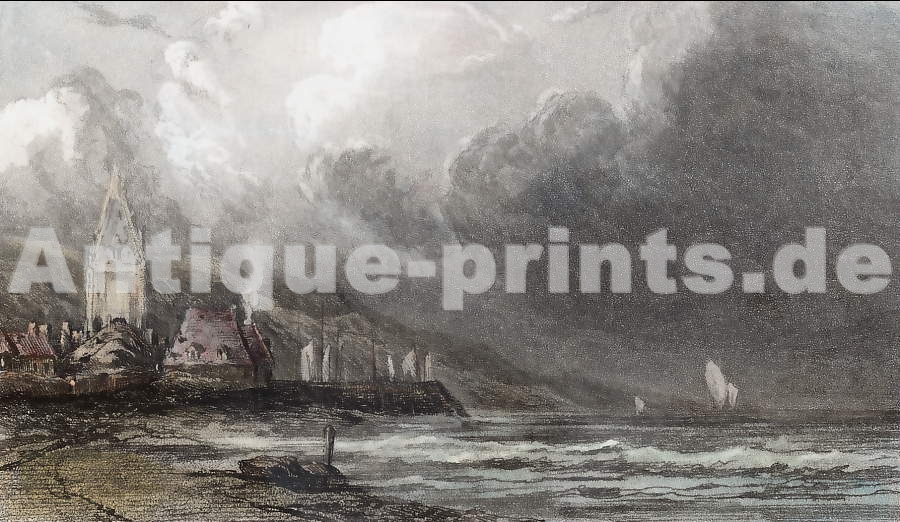 Marine. Gravure sur acier, gravée par L. Marvy d´après E. Isabey. 1844. Très bon état. Aquarellée à la main. 15,5x9cm. Montée sous passe-partout.